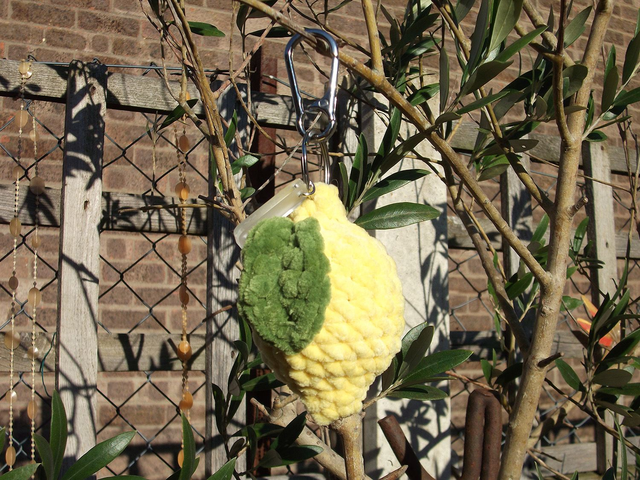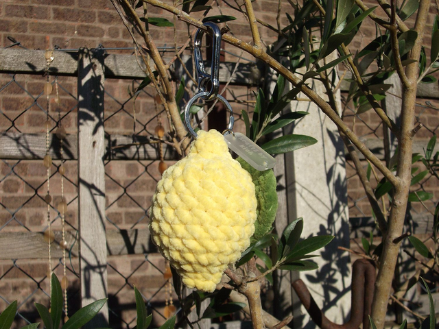 the most perfect lemon bag charm for all the zesty besties, handmade using yellow and green chenille yarns 🍋