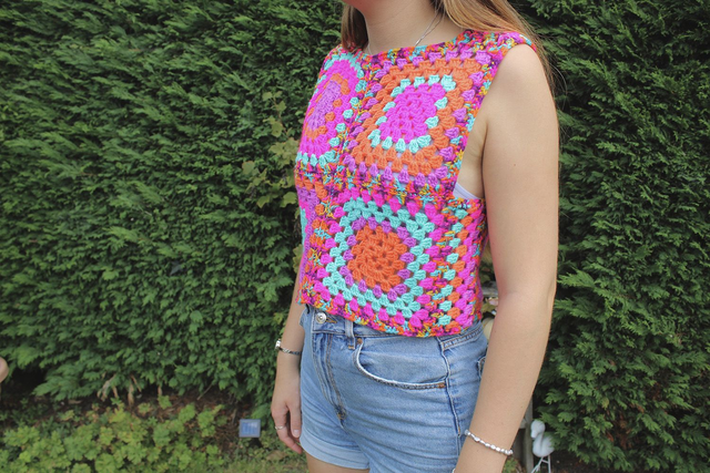 Neon Granny Square Boxy Vest