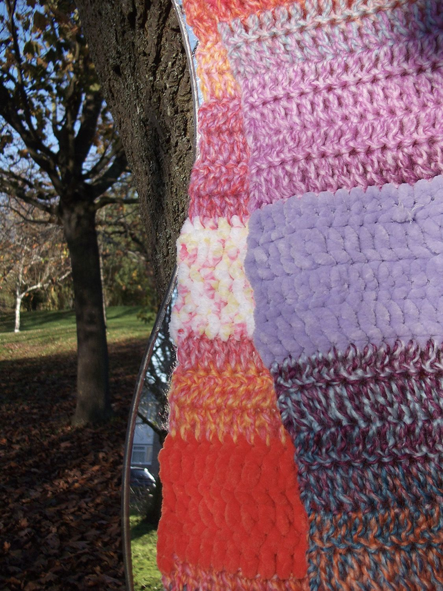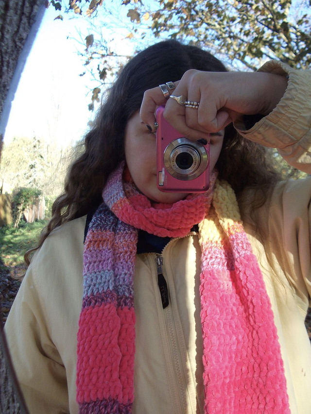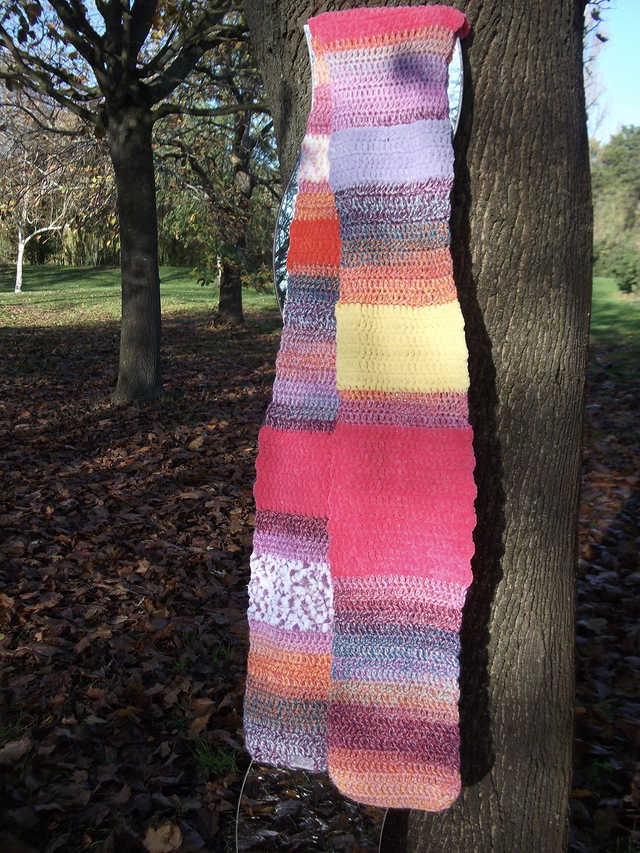 this funky patchwork scarf is handmade using a mixture of scrap chenille yarns and a chunky ombre acrylic ! 🧣