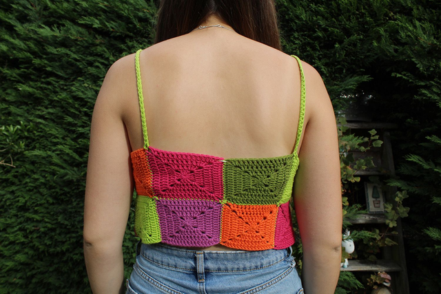 Pink, Orange, Green & Purple Granny Square Crop Top